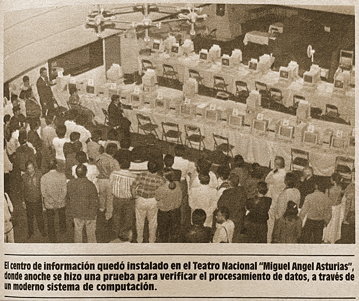 El teatro nacional Miguel Ángel Asturias era el centro de poder y cómputo en donde se concentraba la información electoral y ahí estaba este servidor, en uno de los pasillos cuando, de repente, se escucha un tropel de personas, murmullos a granel y gritos en la plaza central de la instalación. Resulta que el Tribunal Supremo Electoral había actualizado datos y daba como contendiente a Portillo para la segunda vuelta.